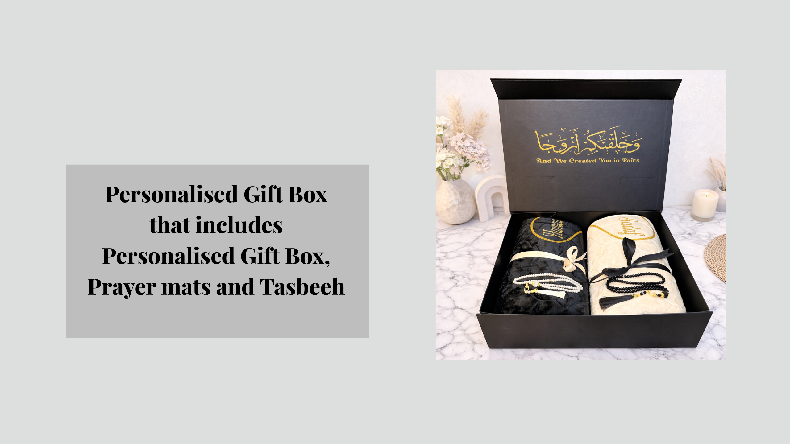 Personalised Couple Prayer Mat with Keepsake Gift Box & 2 Tasbeeh